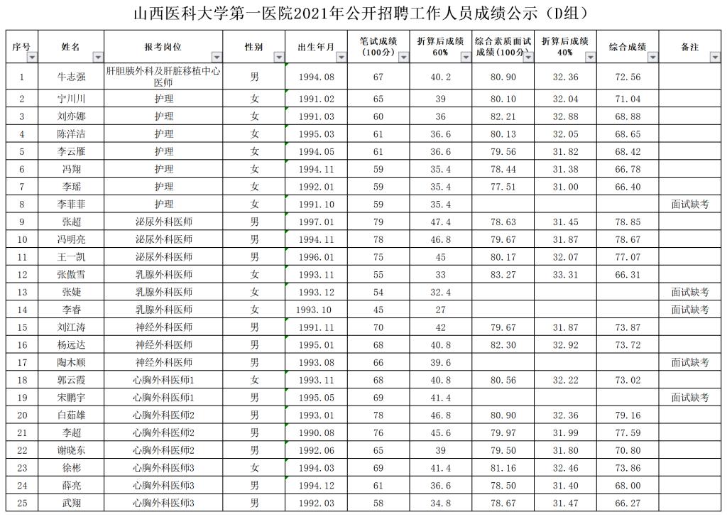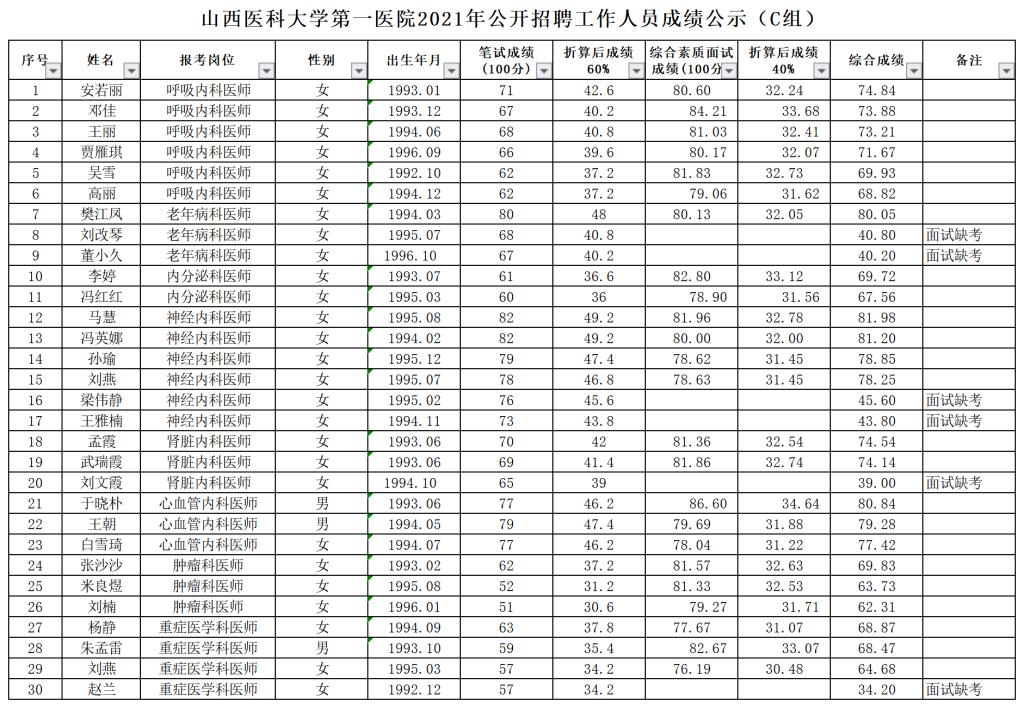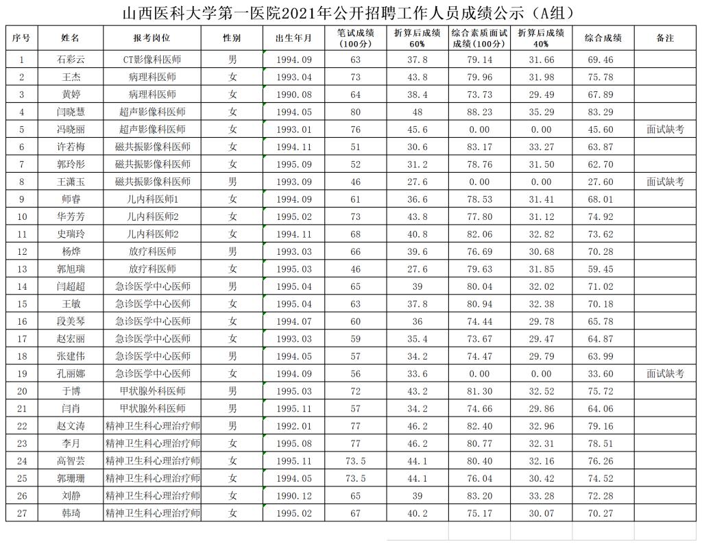 无码流出 2021年公开招聘工作人员成绩公示