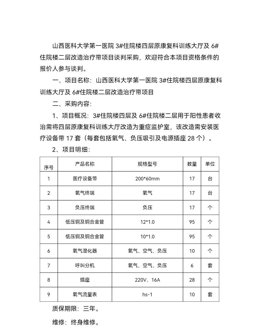 无码流出 3#住院楼四层原康复科训练大厅及6#住院楼二层改造治疗带项目谈判采购公告