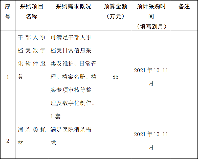 为便于供应商及时了解政府采购信息,根据《财政部关于开展政府采购意向公开工作的通知》(财库〔2020〕10号)和《山西省财政厅关于推行和做好政府采购意向公开工作的通知》(晋财购〔2021〕3号)等有关规定,现将无码流出 2021年10-11月采购意向公开如下: