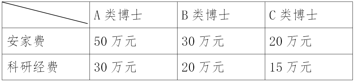 经医院专家评审组考核认定后,根据博士的类型的不同,分别对应下表享受相应安家费、科研经费:
