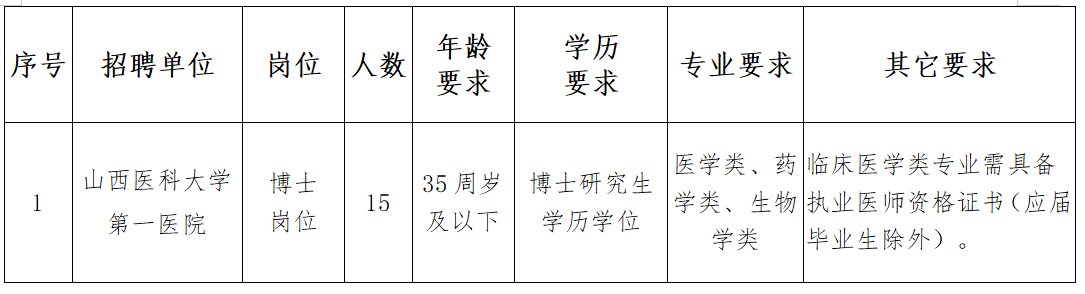 办理完聘用手续到岗后的博士研究生,按照山西省和医院有关政策享受相应工资和绩效待遇。符合以下条件者,可享受相应安家费、科研经费: