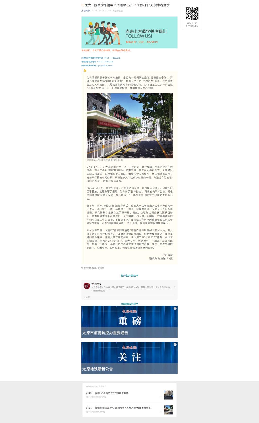 太原晚报|山医大一院就诊车辆尝试“即停即走”!“代客泊车”方便患者就诊