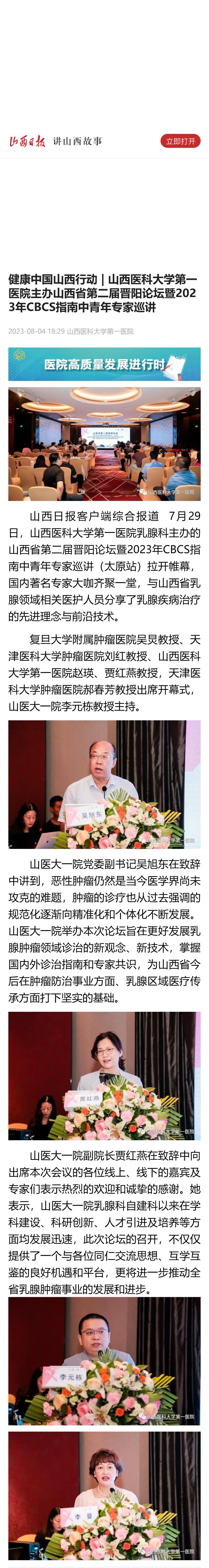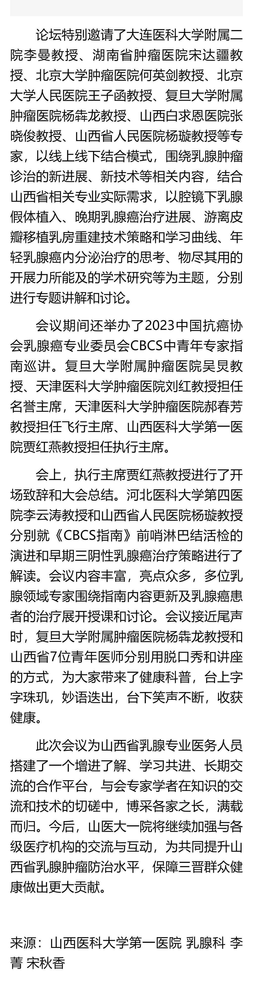 山西日报|健康中国山西行动 | 无码流出 主办山西省第二届晋阳论坛暨2023年CBCS指南中青年专家巡讲