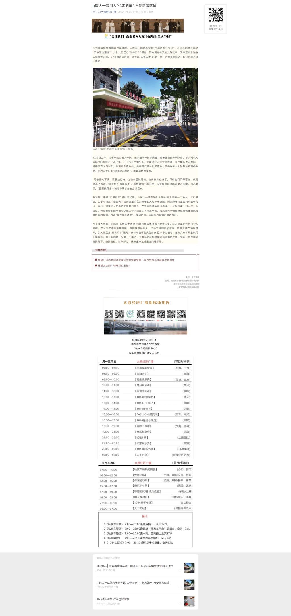 太原经济广播|山医大一院引入“代客泊车” 方便患者就诊