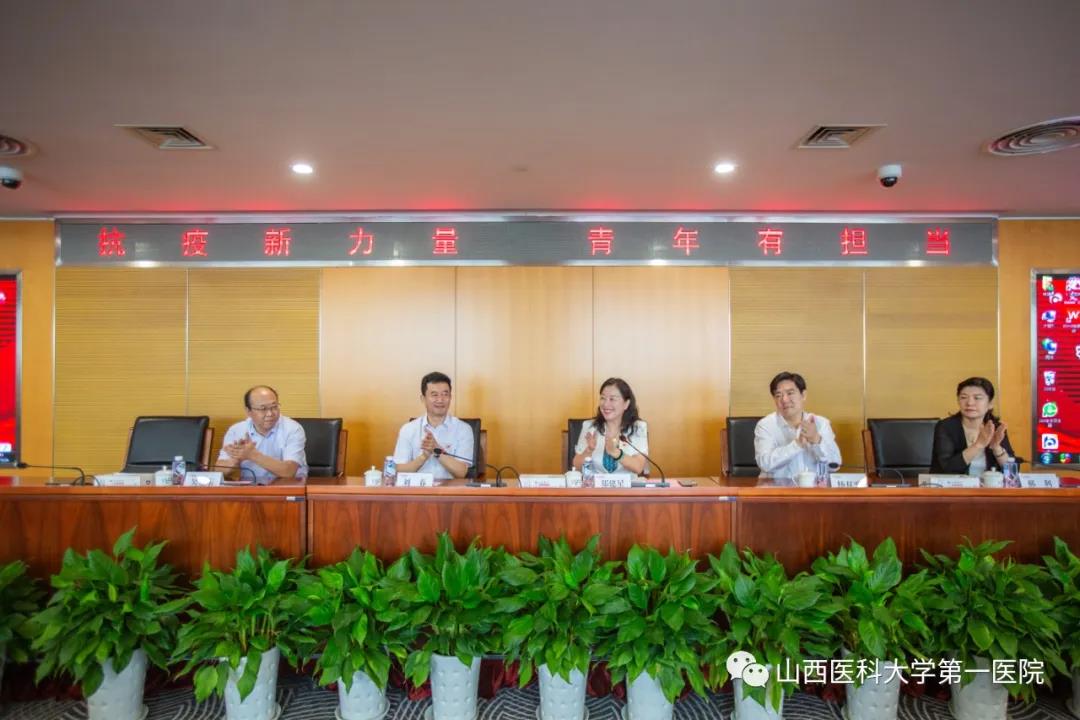 团委与交通银行山西省分行团委联合举办“银医合作——抗疫在行动”事迹分享会暨党团联建活动。省交行行长郑建星、副行长杨双平与一院党委书记刘春、党委副书记吴旭东参加了本次活动。