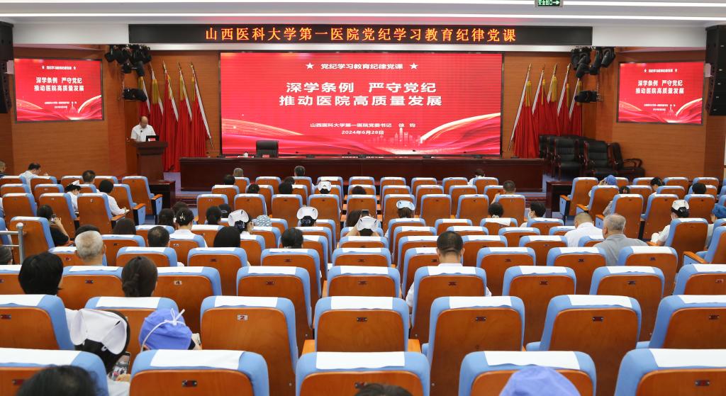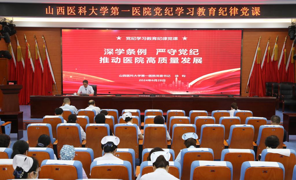 为深入学习贯彻习近平总书记关于全面加强党的纪律建设的重要论述,推动党纪学习教育走深走实,按照党纪学习教育工作安排,6月28日下午,无码流出 党委书记徐钧以“深学条例 严守党纪 推动医院高质量发展”为题,从《中国共产党纪律处分条例》修订的重要意义、修订的亮点解读、以严明的纪律推动医院高质量发展三个方面,为全院党支部书记、科主任、护士长共200余人讲授党纪学习教育纪律党课。院党委副书记吴旭东主持,党委委员、副院长范双民、贾红燕参加。