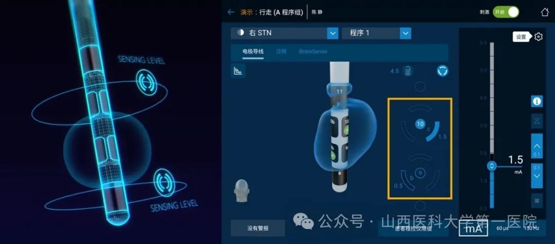 “电极的精准植入是决定脑起搏器手术效果的关键因素之一,别看细细一根,科技含量却非常高,它需要把电刺激精准、稳定的传输至位于患者脑深部的神经核团,并保障术后的长期疗效”,王明宇主治医师表示,“方向性电极系统的应用是脑起搏器个体化精准治疗进程中的重要革新之一,也是必经之路,相较于传统的环形电极,SenSight™方向性电极系统最大的优势,一方面在于它实现了方向性刺激,通过独特的1-3-3-1圆角分段式八触点设计来自由调整刺激方向,独立控制触点电流,从而精准治疗目标核团,避开无需刺激的大脑部位,实现‘疗效最大化,副反应最小化’;另一方面在于它具备强大的脑感知能力,能够精准捕捉患者脑内与疾病症状相关的脑电信号,灵敏度达到了刺激脉冲的百万分之一。客观的大脑数据将会辅助医生的治疗决策,以应对疾病的进展和变化,后续我们团队将根据患者的情况实施个性化的治疗措施,帮助她改善更好。”