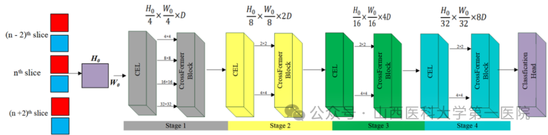脑胶质瘤是中枢神经系统最常见的原发性恶性肿瘤,具有高度异质性,平均存活时间不到21个月。相同病理级别的脑胶质瘤表现出不同的生物学行为,IDH野生TERT启动子突变型胶质瘤具有更差的预后和更强的侵袭性。研究团队聚焦脑胶质瘤高度分子异质性难以术前精准量化的重要临床问题,回顾性分析了山西医科大学3所附属医院、北京天坛医院和TCGA公共数据库中1185例脑胶质瘤患者的多参数磁共振图像(MRI)和肿瘤基因分子信息,基于多中心、大队列患者数据,首次融合多维度MRI 、跨尺度注意力视觉Transformer(CrossFormer)深度学习和影像组学,实现了IDH野生TERT启动子突变型胶质瘤的术前精准预测和预后评估,这对早期无创预警脑胶质瘤的恶性转化具有重要研究价值,有助于临床对脑胶质瘤进行术前精准诊断、生存预后评估及风险分层管理。