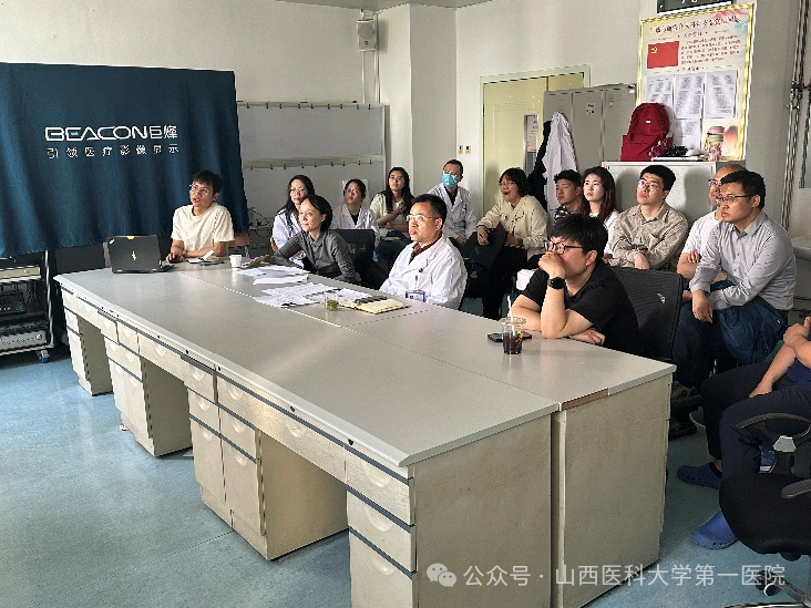 随后,李金玉博士汇报了冯对平教授团队最新研究进展,展现了山医大一院在肝硬化门静脉高压领域的扎实积累与创新探索。祁小龙教授对团队的研究成果给予高度评价,并就技术难点和未来方向提出宝贵建议,为团队下一步研究指明了方向。