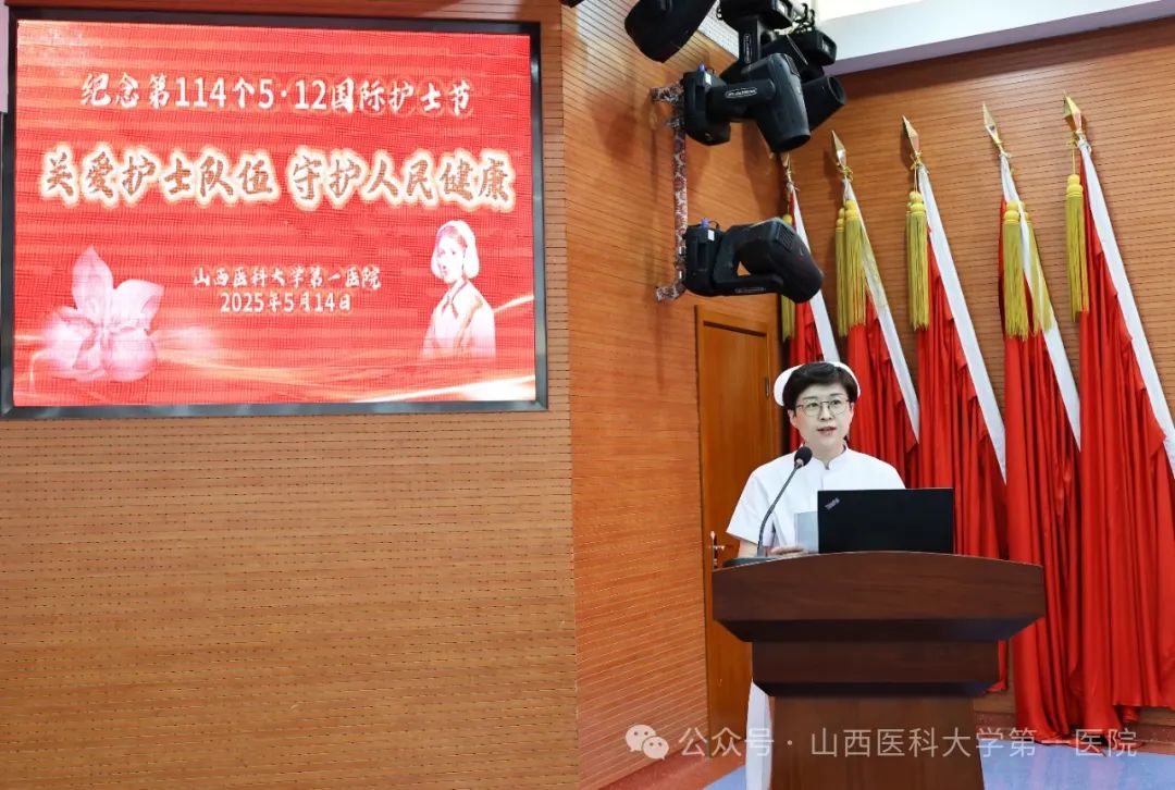 纪委书记丁晖宣读在山西省卫健委主办的“护理领域标准规范竞技活动”中获奖案例和优秀组织单位获奖名单。山医大一院参加了全部6个赛道比赛,荣获卓越案例4项,示范案例1项,优秀案例1项,同时获得团体优秀组织奖。