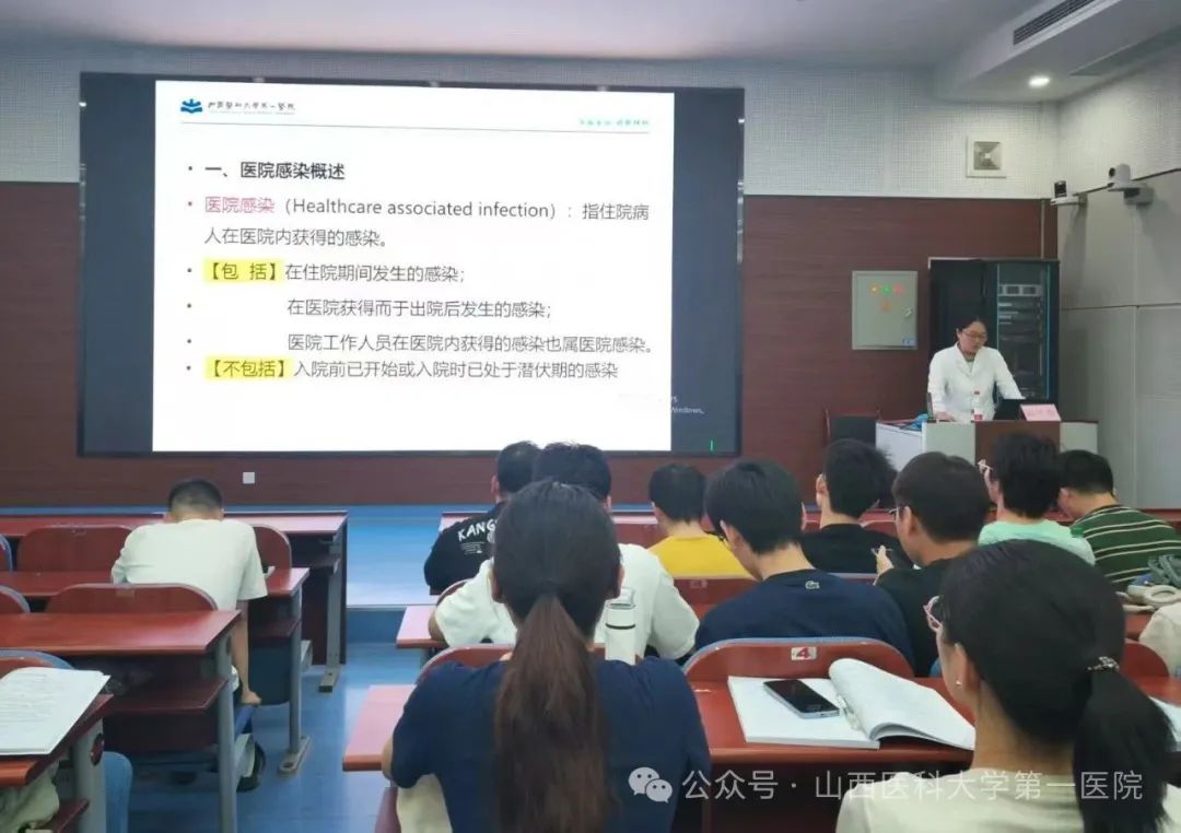 感染管理科潘玮从隔离与职业防护、医疗感染监测、职业暴露、消毒灭菌、医疗废物管理与可回收生活垃圾等方面进行了“医院感染管理知识”培训,要求实习生既要确保患者生命安全、也要注意自身安全,避免临床事故、职业暴露等不良事件的发生。培训结束后进行考核,强化了学生学习效果。