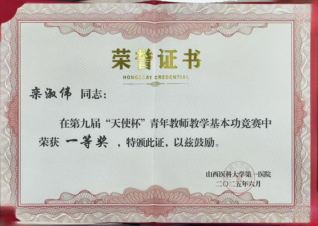 在近期各类教学竞赛中捷报频传,在院工会主办的第九届“天使杯”青年教师教学基本功竞赛中,栾淑伟药师凭借《临床药物治疗学·术后疼痛药物治疗》课程的创新设计和生动演绎,从44名选手中脱颖而出获得一等奖,并在山西医科大学校级决赛中斩获医科组第六名。她通过“分层·实战·进化”教学法,构建"教学内容-教师活动-学生活动-设计意图"四维闭环,严循大纲创新案例,依托数据溯源盲点,开发用药决策树推动教学进化,将3D动画与角色扮演融合课堂,将抽象理论转化为临床胜任力,生动诠释“懂药物,更懂患者”的育人理念。