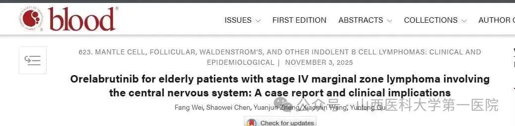 血液内科魏芳主任医师团队的一项关于“中枢神经系统受累的边缘区B细胞淋巴瘤的诊断和治疗”的罕见病例报道,成功入选本届年会,并被顶级医学期刊《BLOOD》收录。该成果为全球深入理解这一复杂、罕见淋巴瘤的诊断路径与治疗策略提供了宝贵的临床见解,彰显了医院在疑难危重血液病诊治方面的扎实功底与创新能力。