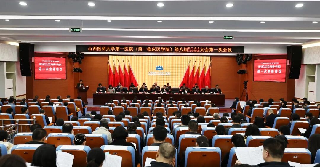 /第一临床医学院在护校六层多功能报告厅召开第八届职工代表大会暨工会会员代表大会第一次会议。山西省卫生健康委员会党组成员、副主任舒言,山西医科大学党委副书记彭月兰,山西省卫生健康委员会医政处一级调研员王军红,山西医科大学工会主席邢晓伟到会指导。院党委书记徐钧作总结讲话,院长周芸作医院工作报告。全体院领导,第八届第一次职代会(工代会)代表、特邀代表、列席代表等300余人齐聚一堂,共商医院发展大计,共绘职工幸福蓝图。院党委副书记吴旭东主持会议。