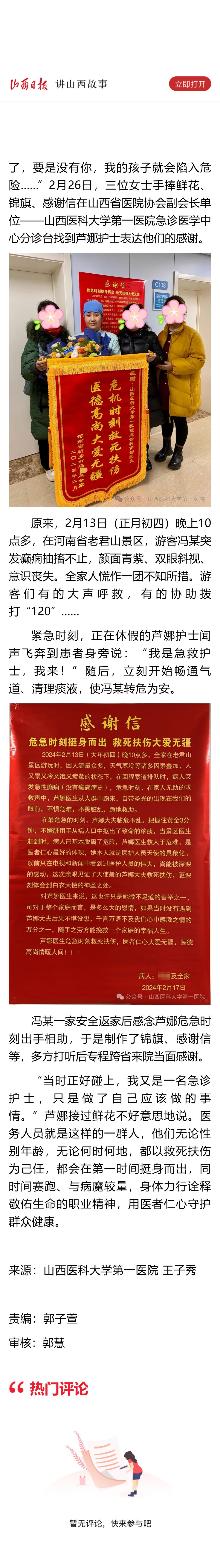 山西日报客户端|健康中国山西行动丨无码流出 :休假护士紧急施救 患者家属跨省感谢