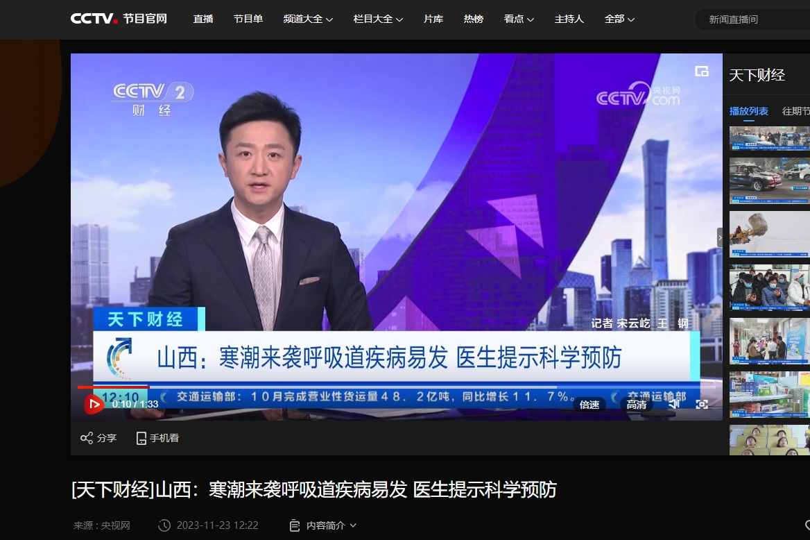 CCTV2财经[天下财经]山西:寒潮来袭呼吸道疾病易发 医生提示科学预防