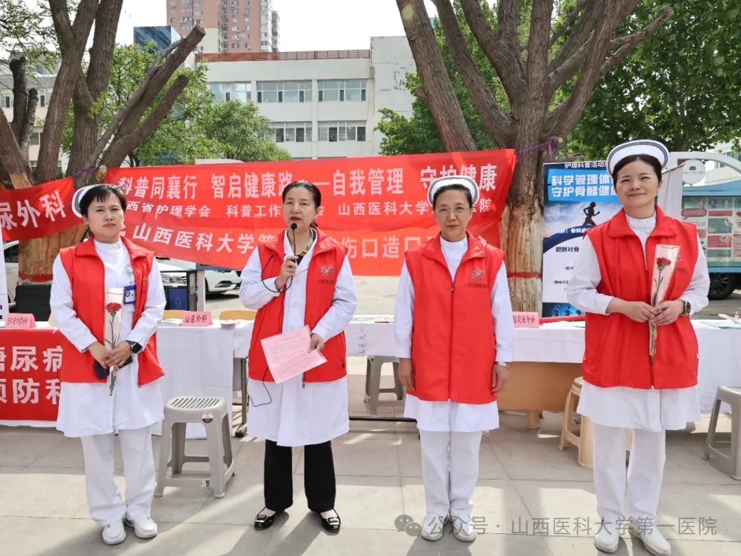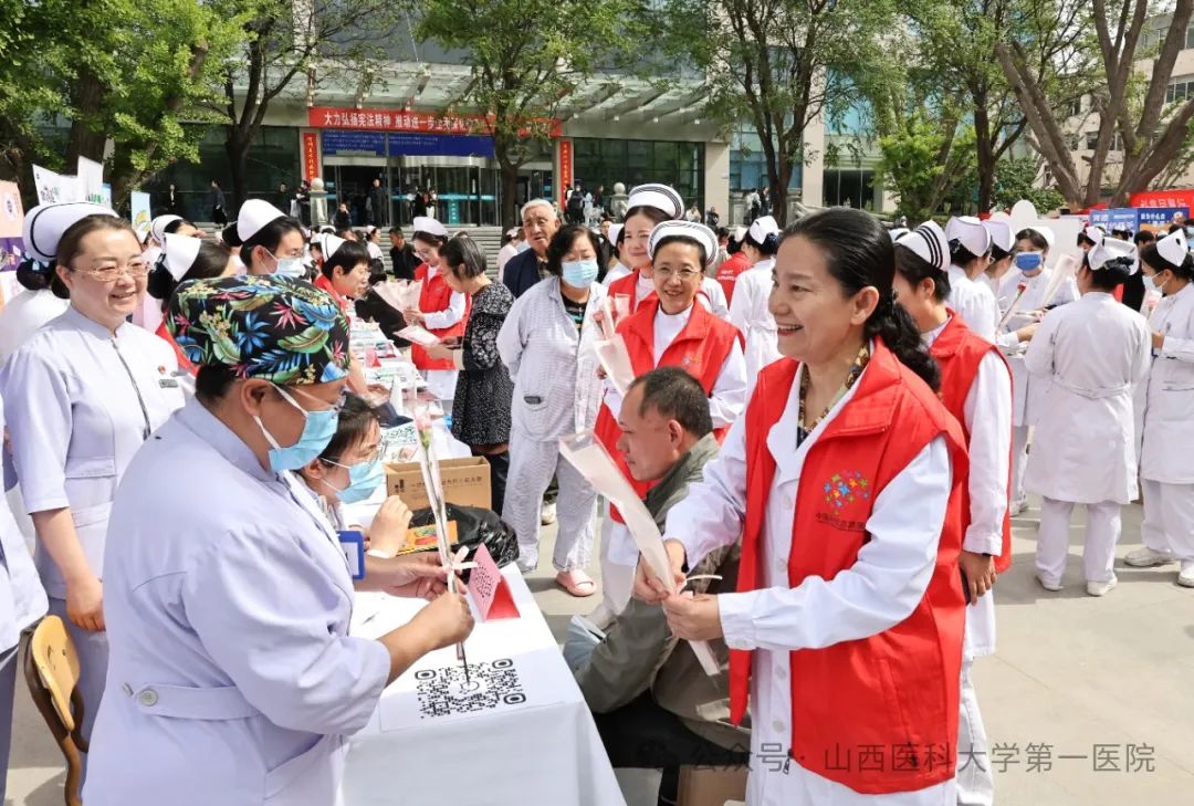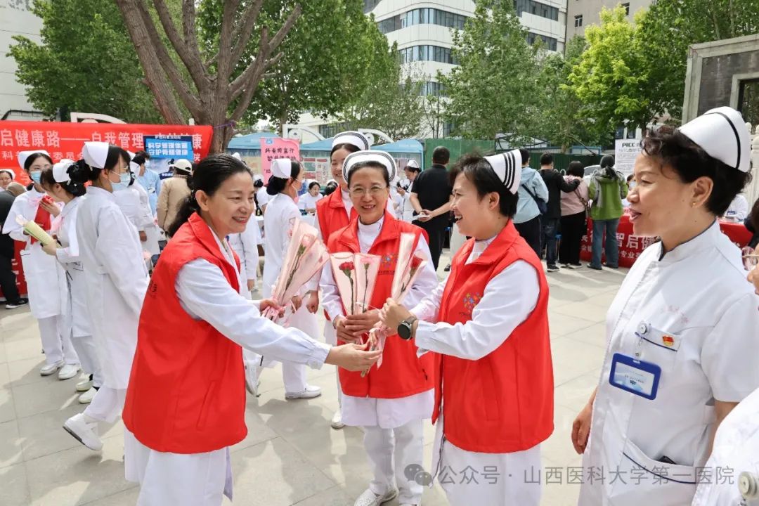 山医大一院副院长韩清华来到现场慰问护理人员,向全体护士表达感谢并送上节日的祝福与鲜花。她讲到,护理队伍不仅是临床一线的白衣战士,更是健康科普的先锋队,义诊活动以专业服务回馈社会,是对南丁格尔精神的最好传承,同时也展示了一院护理队伍的实力与精神风貌,希望大家在守护公众健康的同时也要关注自身健康,持续推动护理事业高质量发展。