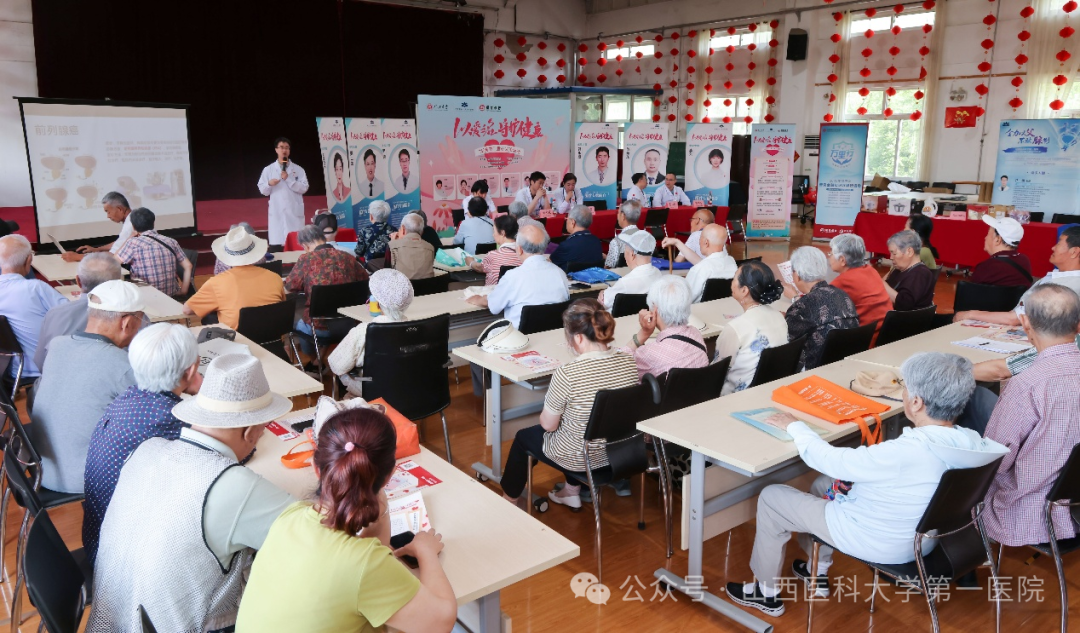 活动伊始,泌尿外科尹楠带来一场深入浅出、图文并茂的科普讲座。他聚焦中老年男性高发的前列腺增生与前列腺癌问题,从疾病成因、早期信号、科学防治到最新诊疗进展进行了系统讲解,内容贴近生活、实用性强,为在场的“银发学子”们点亮了守护前列腺健康的明灯,现场互动踊跃,气氛热烈。