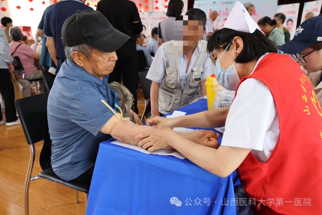 讲座结束后,义诊区域人头攒动。专家们耐心细致地为每一位前来咨询的退休教职工进行了健康评估并答疑解惑。老年病科专家关注多重慢病的管理与综合调适;骨科专家解答腰腿疼痛、运动损伤及足踝问题;中医科专家提供体质辨识与养生调理方案。泌尿外科护理团队毛晶晶、李彩萍为老年男性抽血进行前列腺癌筛查;超声影像科陈耀东全程提供高质量的泌尿系及腹部彩超检查服务,成为现场最忙碌的身影之一。
